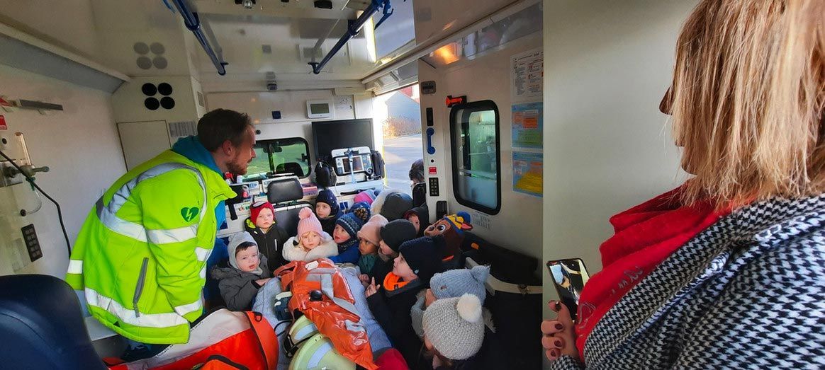Pour les enfants de troisième maternelle, la venue d’une ambulance était la conclusion de notre projet sur la prévention des accidents domestiques.