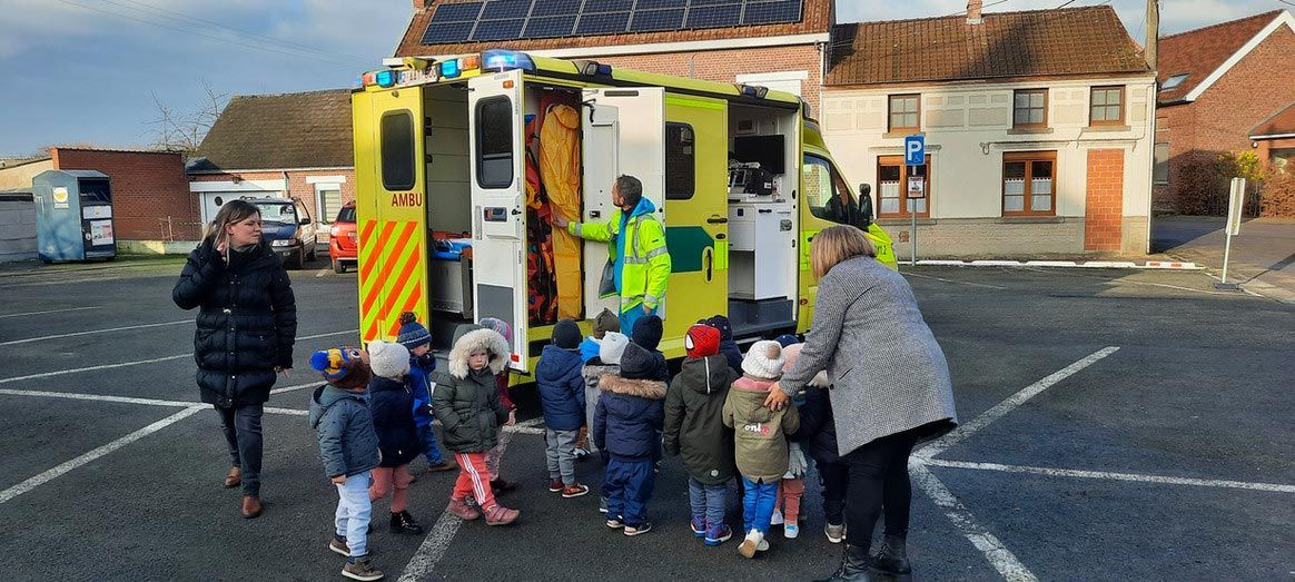 Ce Mercredi 08 Février 2023 les enfants de l'Ecole maternelle communale "les p'tites canailles de Papignies" ont reçu la visite d'une ambulance du service.